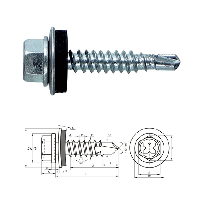 Кровельные саморезы представляют собой усовершенствованную модель шурупа с наконечником сверло, металлической шайбой с прокладкой EPDM (резина с очень высоким содержанием каучука). Шайба с прокладкой EPDM плотно прижимает кровельный материал к конструкции и предотвращает попадание влаги в места соединения.