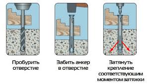 Принцип работы: анкер имеет втулку с продольными лепесткам-прорезями, которые в процессе установки расклиниваются и надёжно фиксируют крепёж внутри стенки.